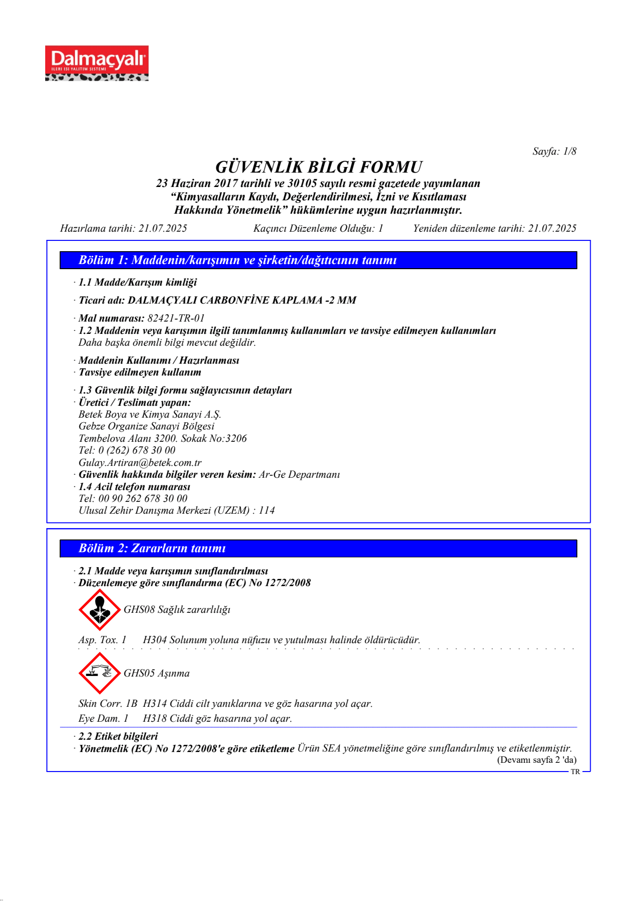 TS 7847 ürün, TS EN 13499 ve TS EN 13500 sistem standartlarına uygun