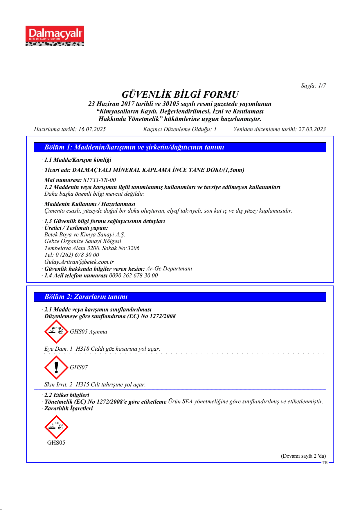 İnce tane dokuda doğal görüntüsüyle yüzeyde homojen bir desen oluşturan, çimento esaslı, elyaf takviyeli, son kat yüzey kaplamasıdır.